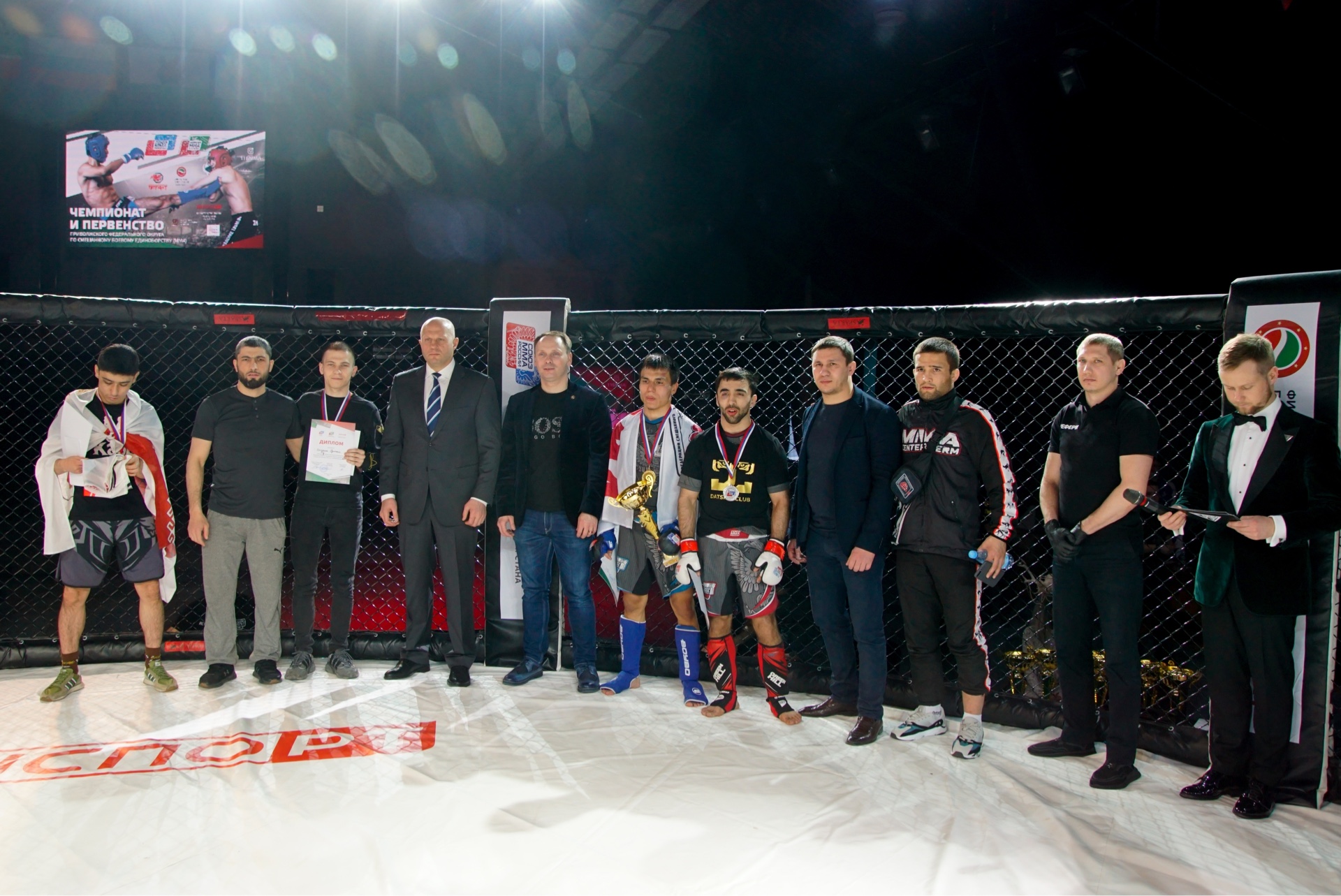 Федор Емельяненко поприветствовал участников, всех Татарстанских любителей единоборств и оценил уровень организации мероприятия: «Спасибо Федерации ММА Республики Татарстан за высокий уровень организации и проведения чемпионата и первенства Приволжского Федерального округа».