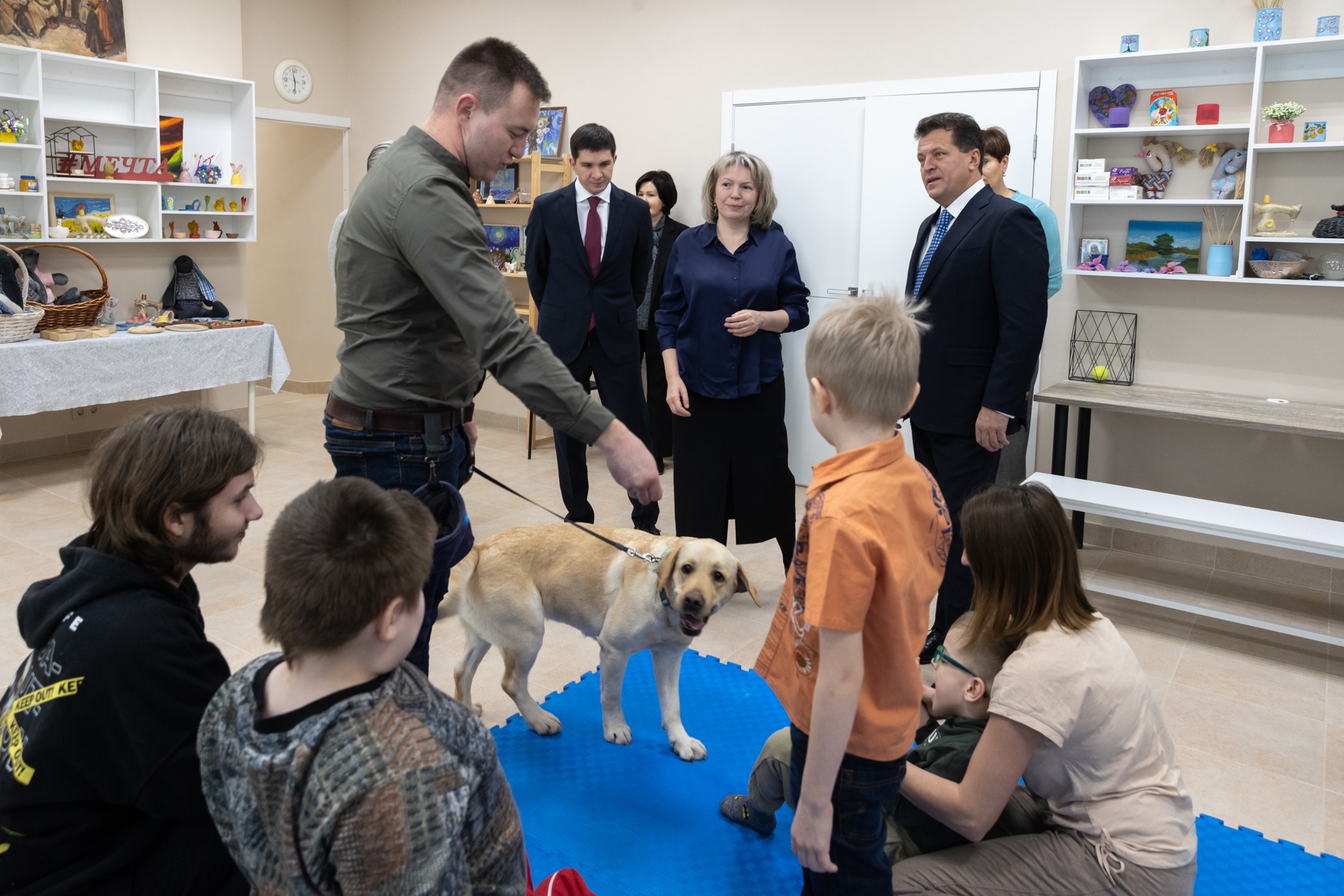 Ильсур Метшин пообщался с педагогом Центра «Мечта» кинологом Дмитрием Дудкиным, выпускником курсов волонтеров по работе с детьми с ОВЗ от АНО «Добрая Казань». Он рассказал Мэру об особенностях проведения занятий по канистерапии.