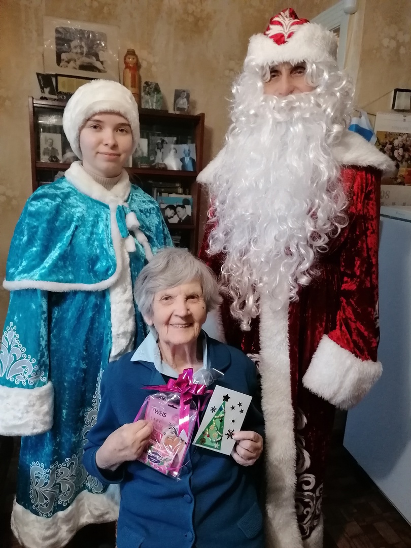 31 декабря не стал исключением, волонтеры «Союза Ветеранов Республики Татарстана» навестили участника Великой Отечественной войны Александра Михайловича Малова и участницу Великой Отечественной войны Софью Яковлевну Порсеву. В новогодних костюмах Деда Мороза и Снегурочки с музыкальным сопровождением поздравили ветеранов и вручили подарки от комитета «Союза Ветеранов Республики Татарстана», и поделки, изготовленные волонтерами.