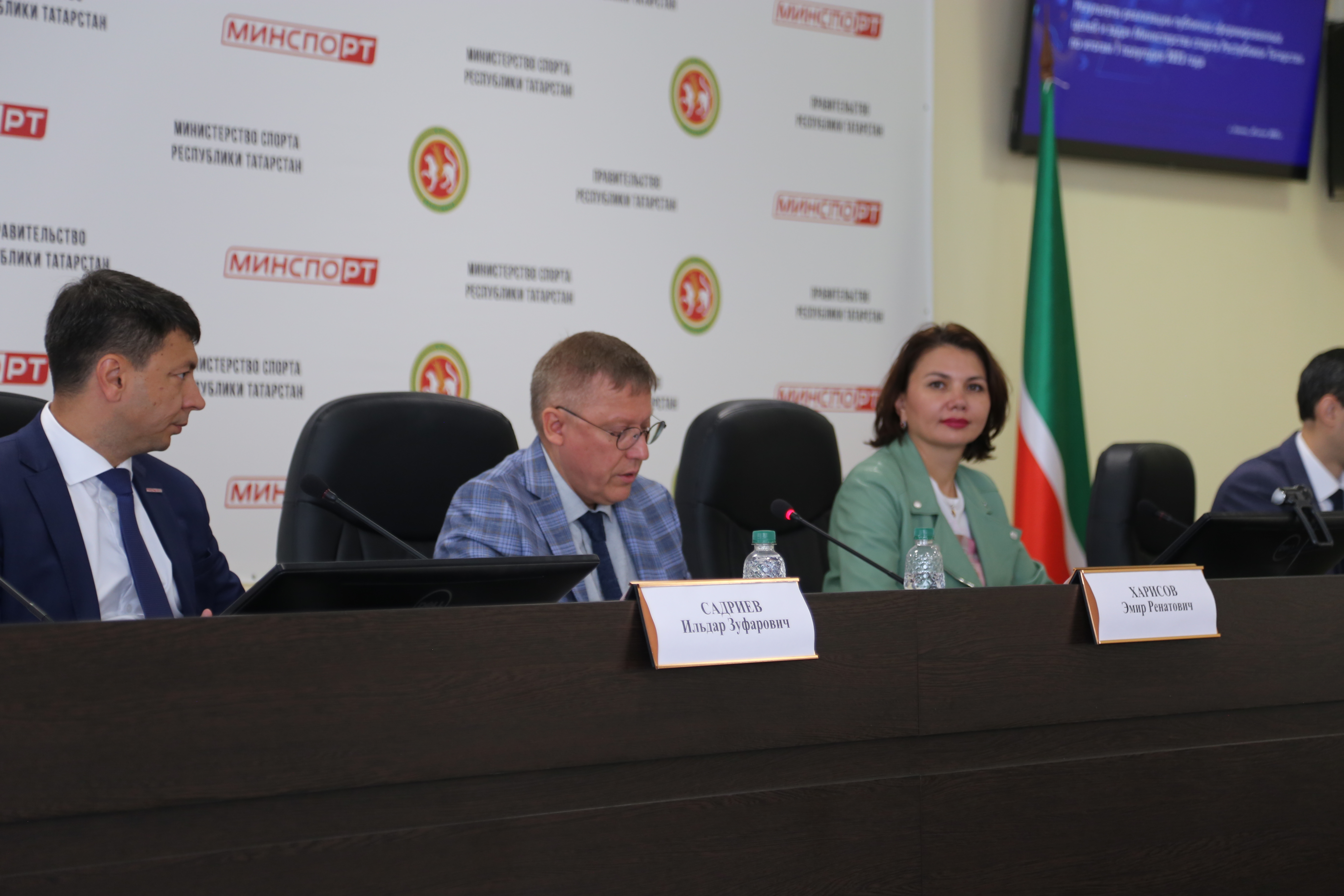 В работе совещания приняли участие члены Общественного совета при Министерстве спорта Республики Татарстан, заместитель министра спорта Республики Татарстан Ильдар Садриев, главный советник отдела общественных проектов Департамента Раиса Республики Татарстан по вопросам внутренней политики Булат Ширеев, заместитель председателя Общественной палаты Республики Татарстан Ирина Ахметова и председатель Общественного совета Эмир Харисов.