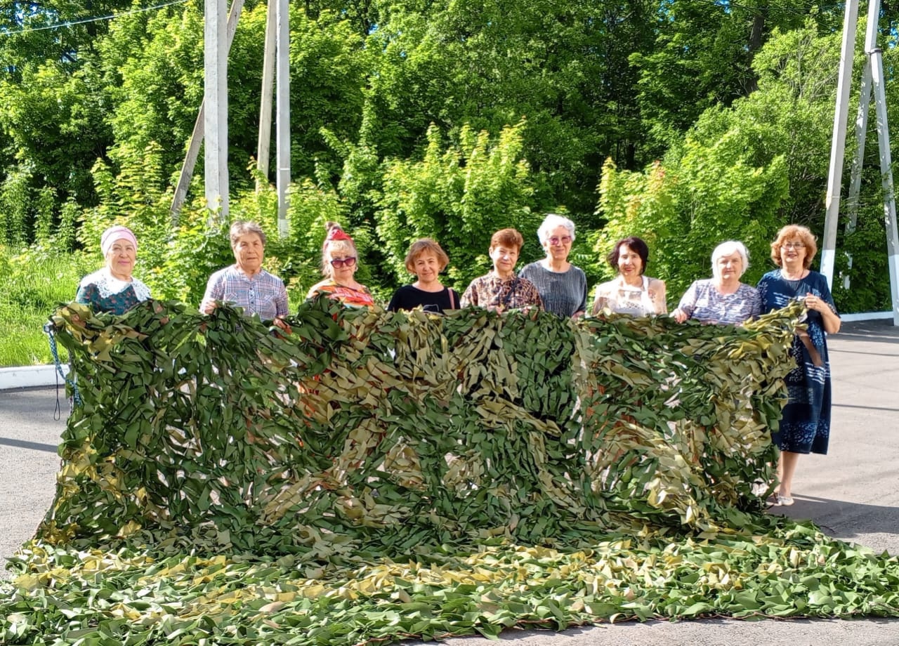 Больше 30 месяцев серебряные волонтёры группы «Виктория» из пгт Актюбинский Азнакаевского района ежедневно в 2 смены плетут маскировочные сетки.