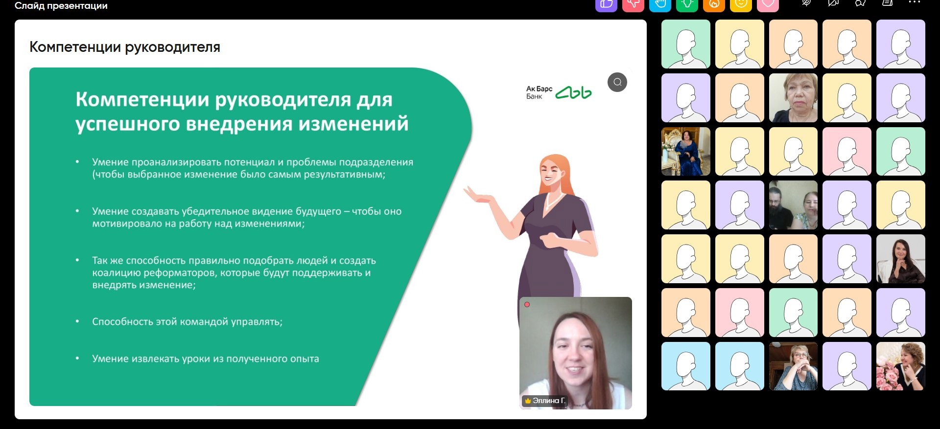 «Изменения – это часть нашей жизни, факт. Теперь всё начинает жить по новому сценарию, и только мы сами придадим ему тот окрас, который необходим: будет ли это нас тревожить и пугать или будет радовать» - отметила бизнес-тренер Корпоративного университета ПАО «АК БАРС» БАНК Эллина Гончарова, открывая седьмой онлайн-тренинг Образовательной программы «Лидеры социальных изменений» Школы наставничества СО НКО РТ. Занятие было посвящено теме «Управление изменениями: как вести команду через транформации».