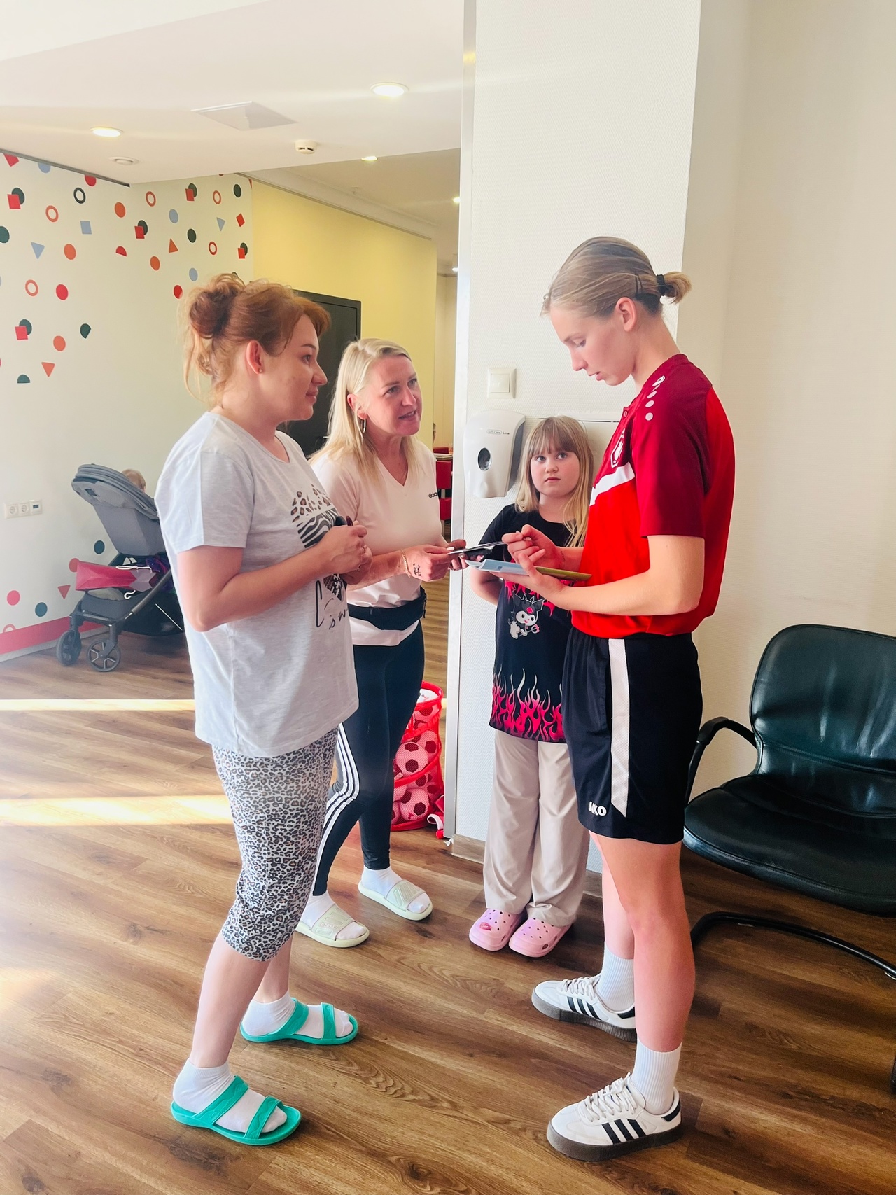 Жители Дома с нетерпением ждали знакомства с известными футболистками Алиной Савиной и Ксенией Кулинич. Началось знакомство с экскурсии по «Дому». «Здесь очень здорово, действительно чувствуется домашняя атмосфера, вы делаете большое дело», - отметили гости.
