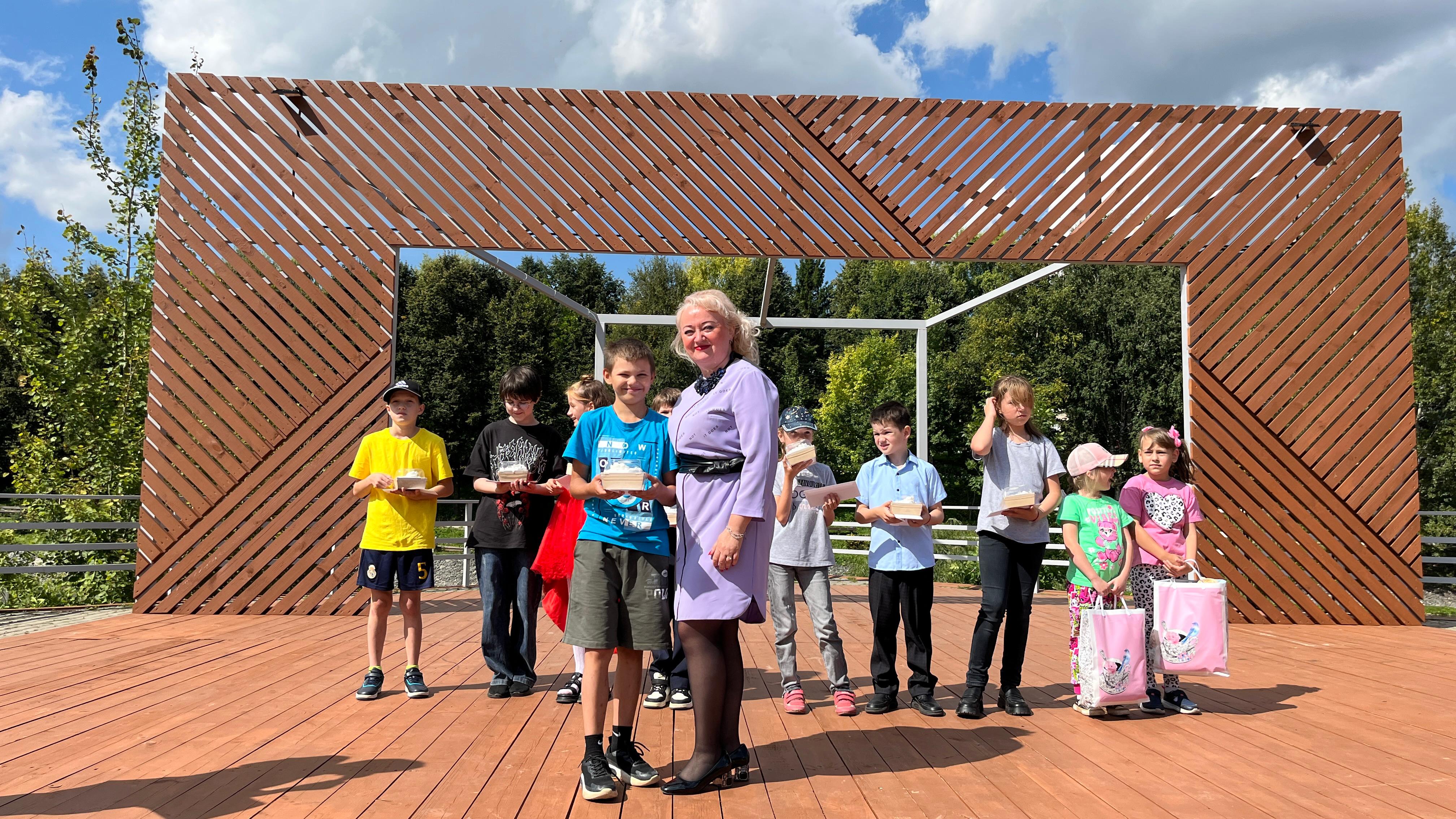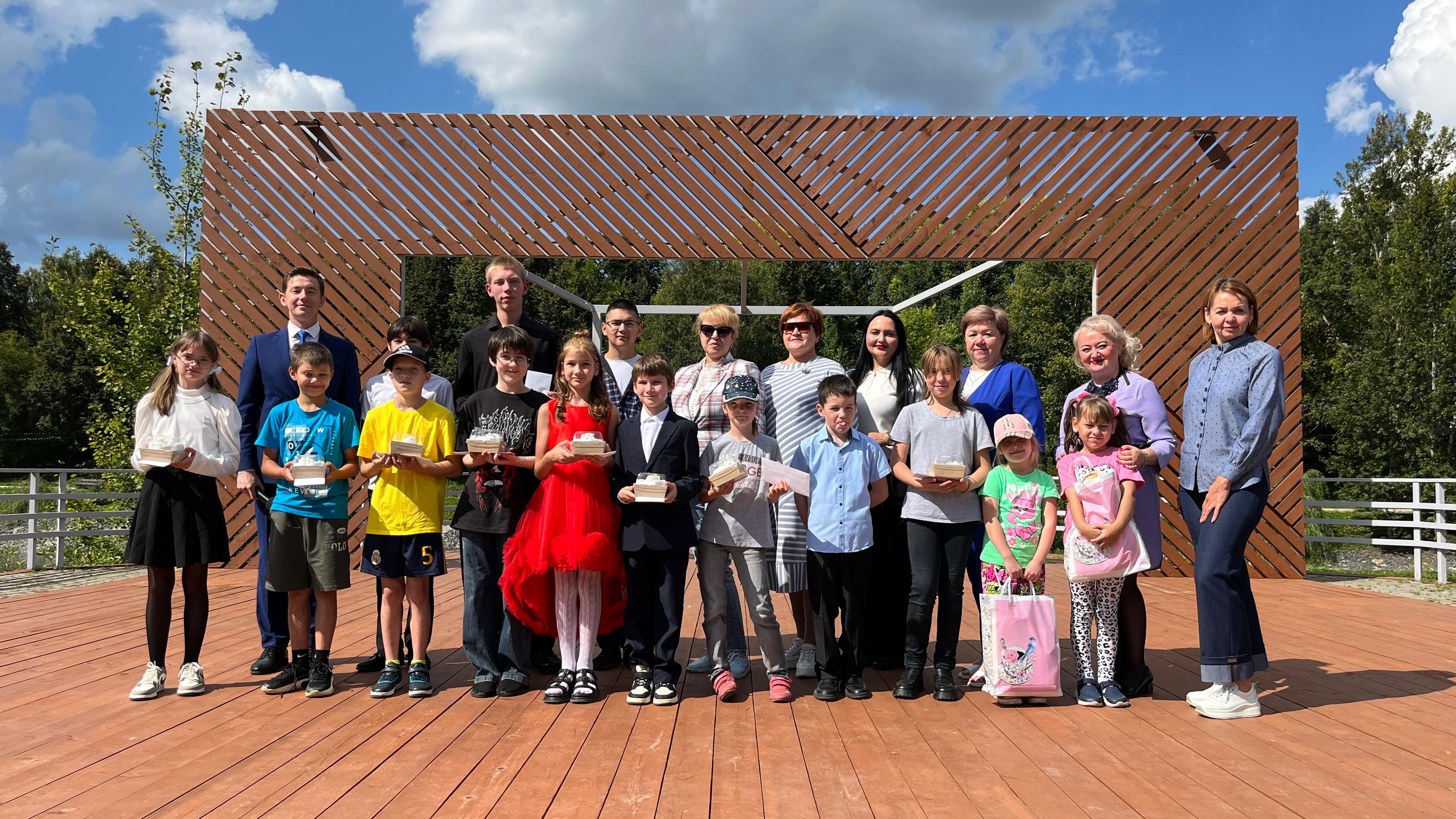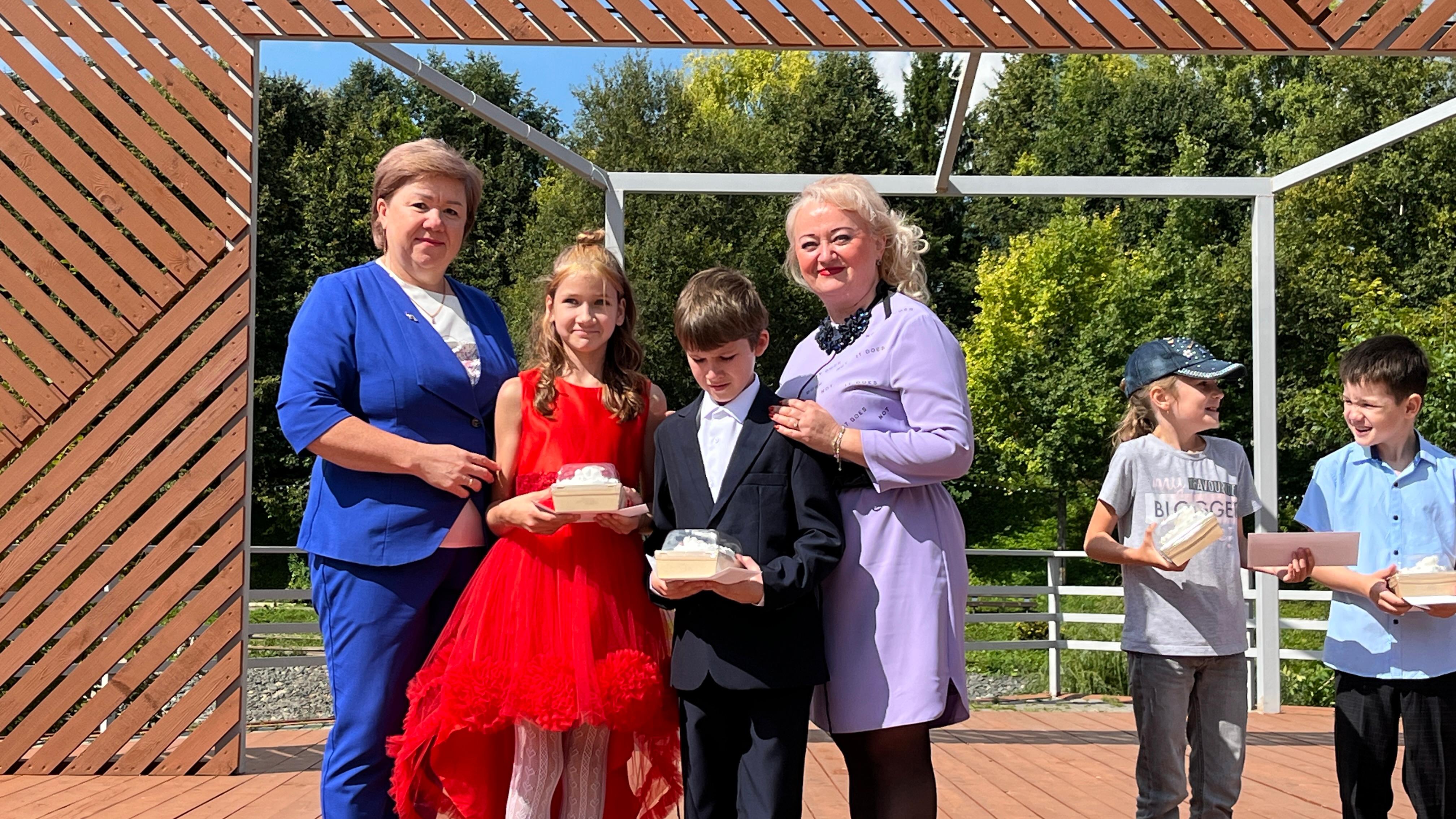 15 детей из многодетных, малообеспеченных семей, участники и победители олимпиад, получили сертификат в магазин школьных товаров и сладкий бенто-торт от магазина «Плюшки-ватрушки», а малыши, идущие в первый класс. еще и мягкие игрушки. Праздничную атмосферу детям и взрослым создала бугульминская Студия праздников «Скакалка».