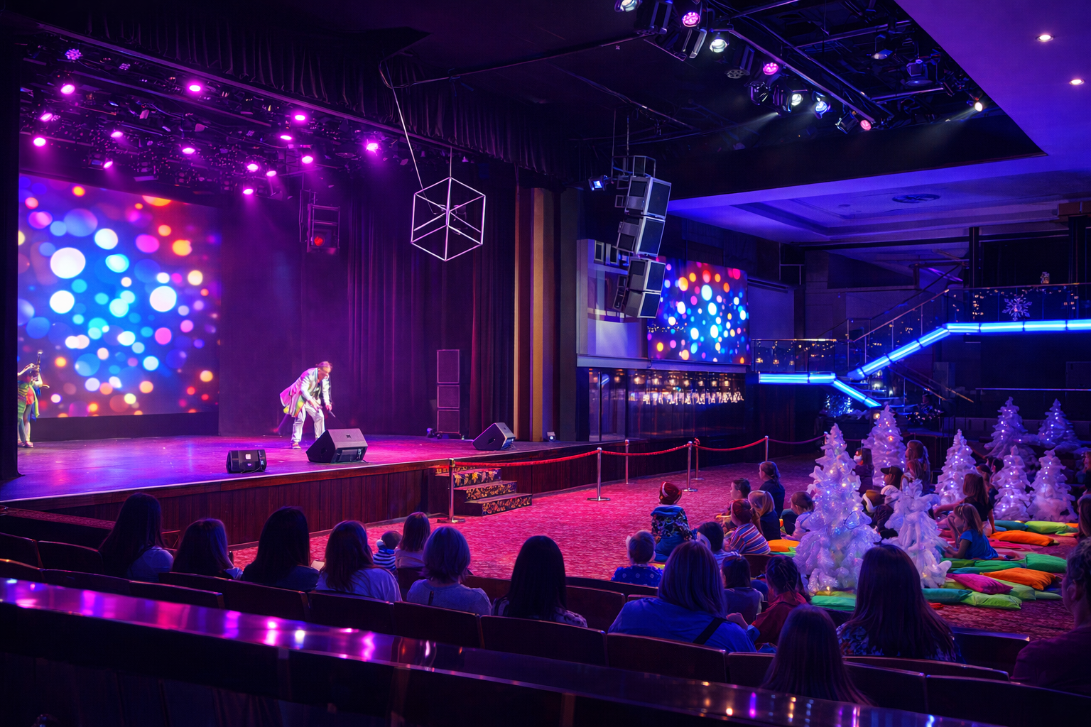 Гости праздника приняли участие в ярком интерактивном шоу с фокусами и спецэффектами, творческих мастер-классах, дискотеке с мыльными пузырями, захватывающее бумажное шоу и веселых боях на воздушных подушках. Каждый элемент елки был продуман таким образом, чтобы дети могли полностью погрузиться в атмосферу волшебства и на время забыть о повседневных сложностях, связанных с лечением. Участие в празднике было бесплатным.