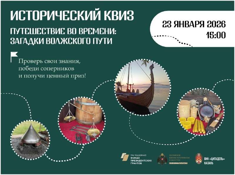 Военно-исторический клуб «Цитадель» Казань приглашает всех желающих на исторический онлайн-квиз «Путешествие во времени: загадки Волжского пути».