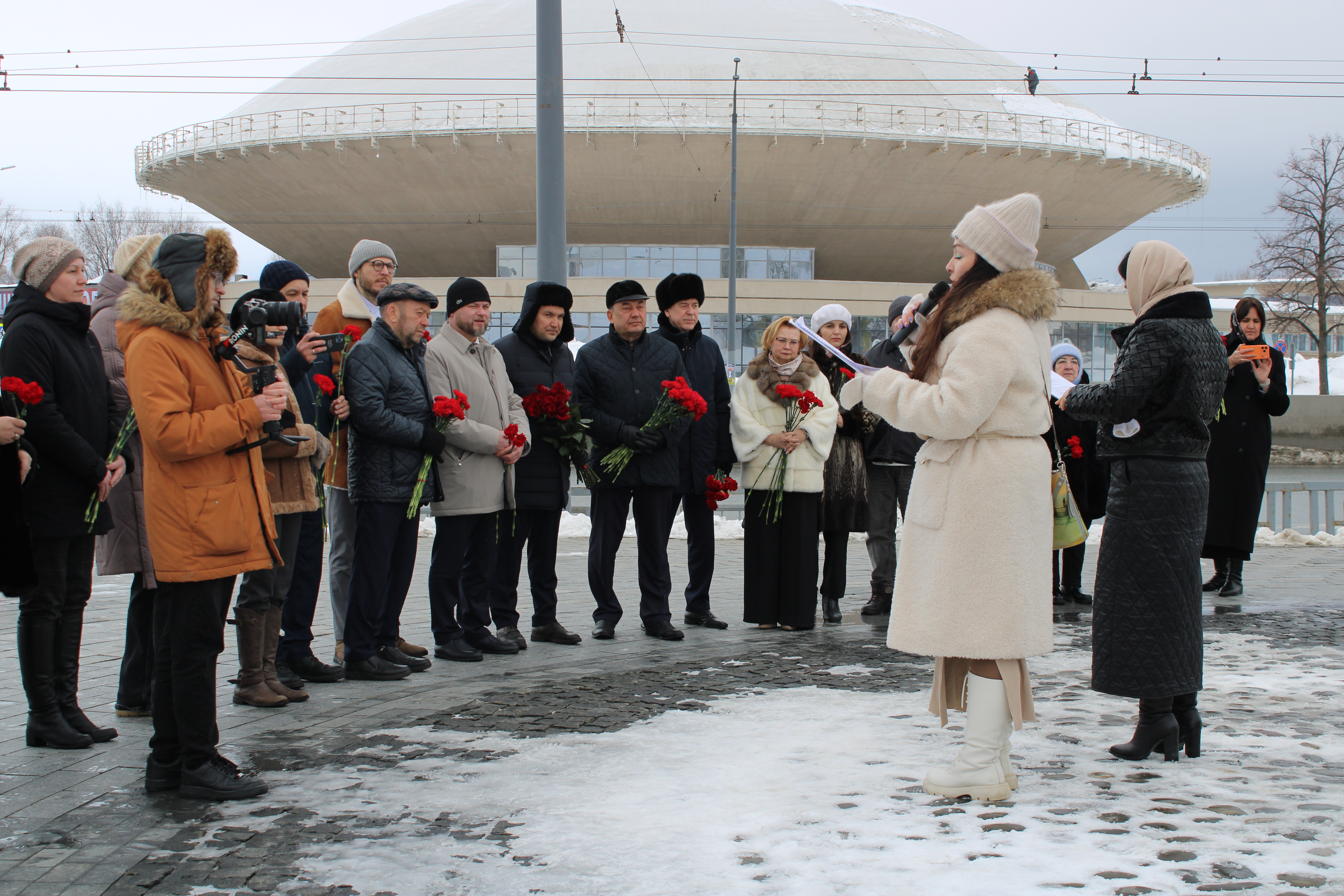 Министр труда, занятости и социальной защиты РТ Эльмира Зарипова, обращаясь к гостям, отметила символичность соседства двух памятников у стен Казанского Кремля: