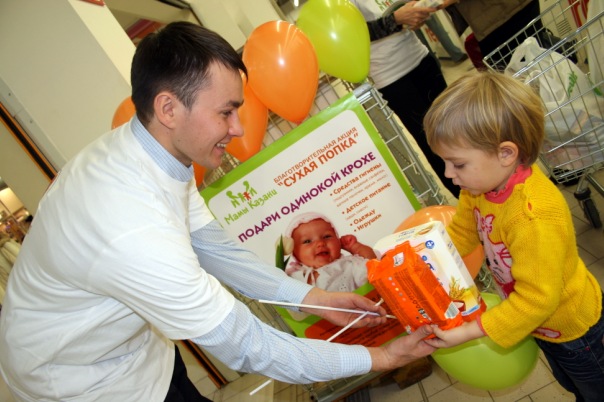 - с 2007 г.по 2010 г. были проведены шесть акций «Сухая попка» в гипермаркетах города, направленные на сбор питания и средств гигиены для нуждающихся детей.