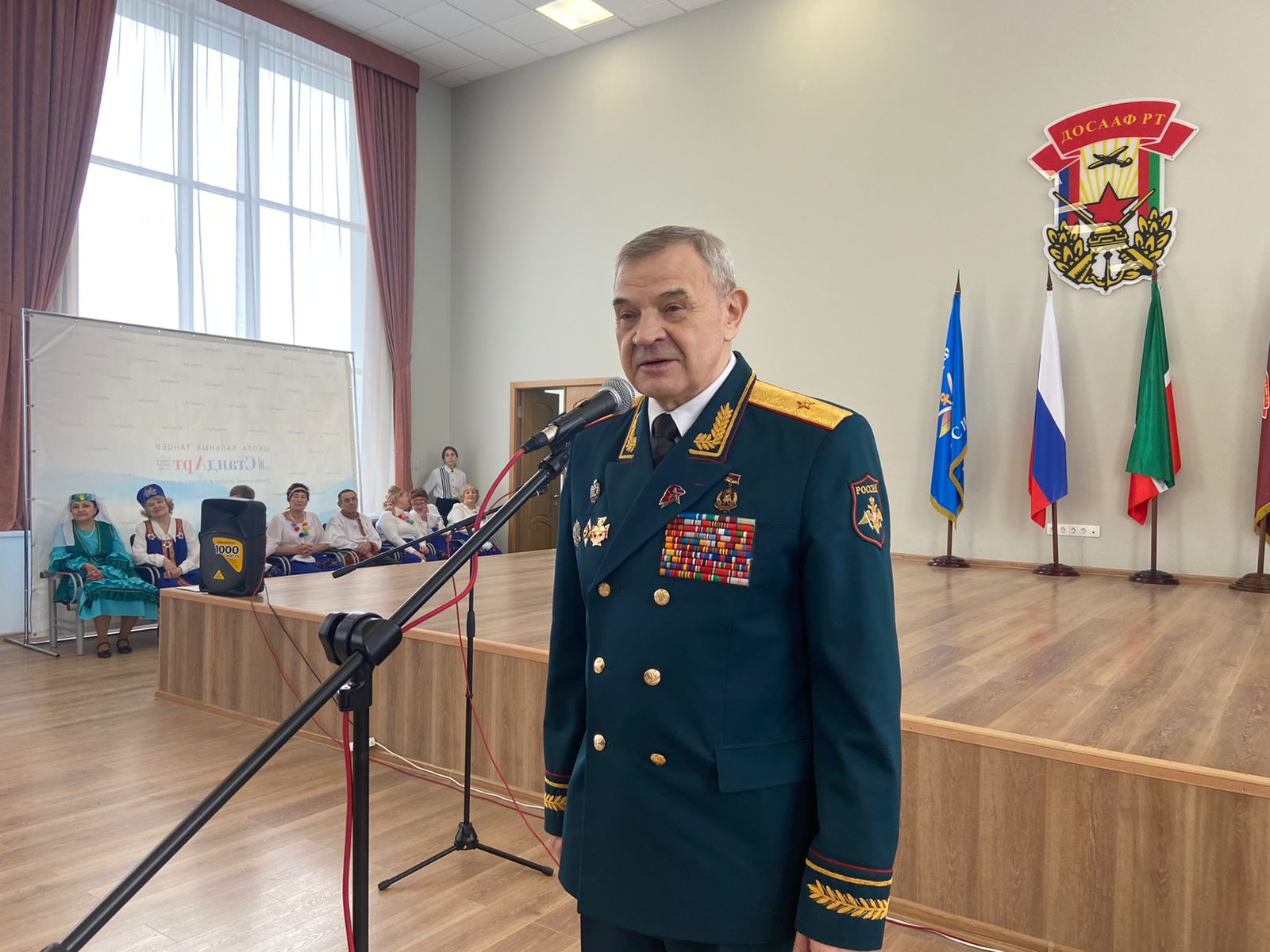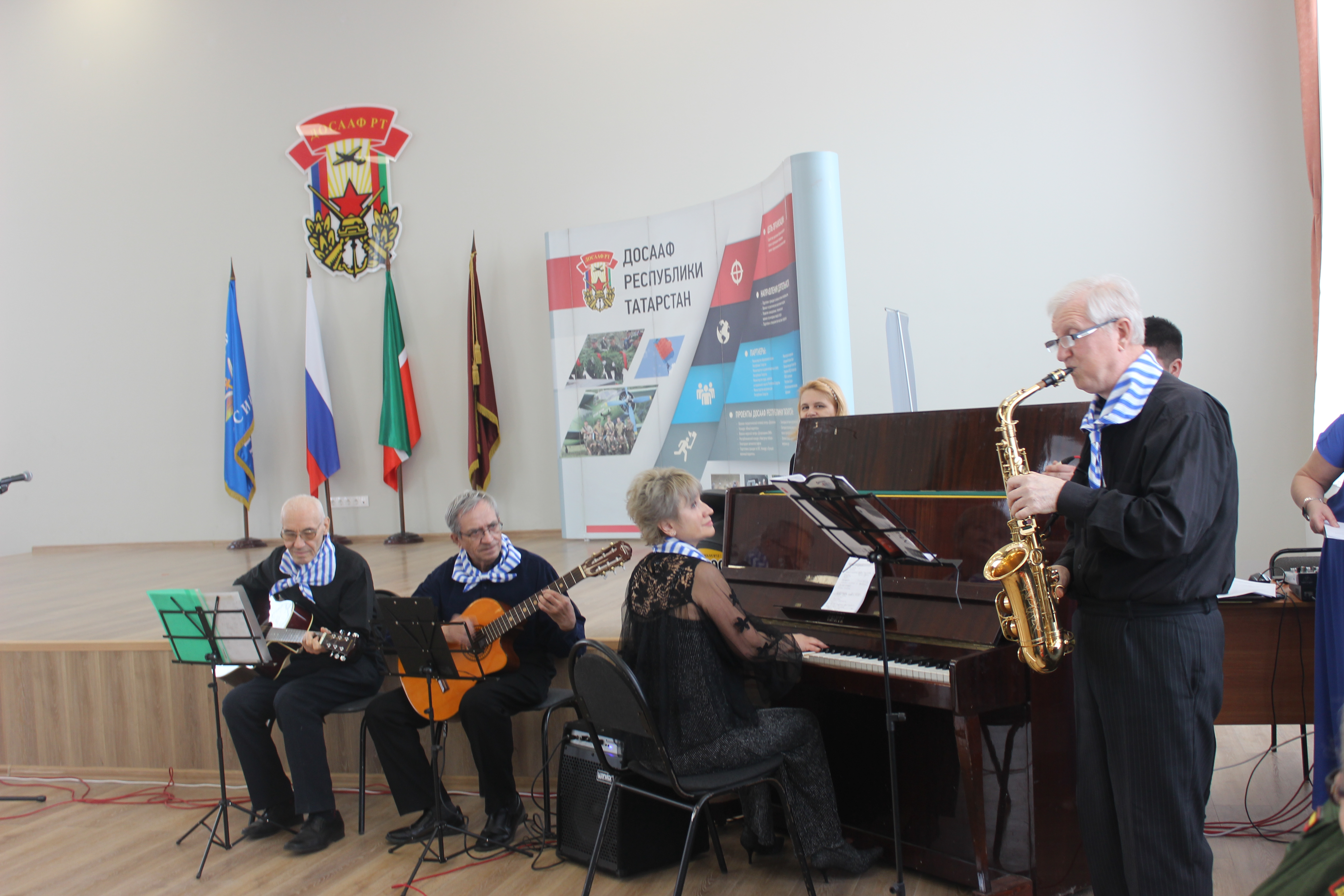 Концерт алдыннан ветераннар оешмалары активистларына Татарстан Республикасы ветераннар берлеге рәисе Бородин А.И. мөрәҗәгать итте. Ветераннар комитеты каршындагы ветераннарга ял итү һәм хезмәт күрсәтү үзәгенең үзешчән сәнгать түгәрәкләре җитәкчеләренә мактау грамоталары һәм медальләр тапшырды.