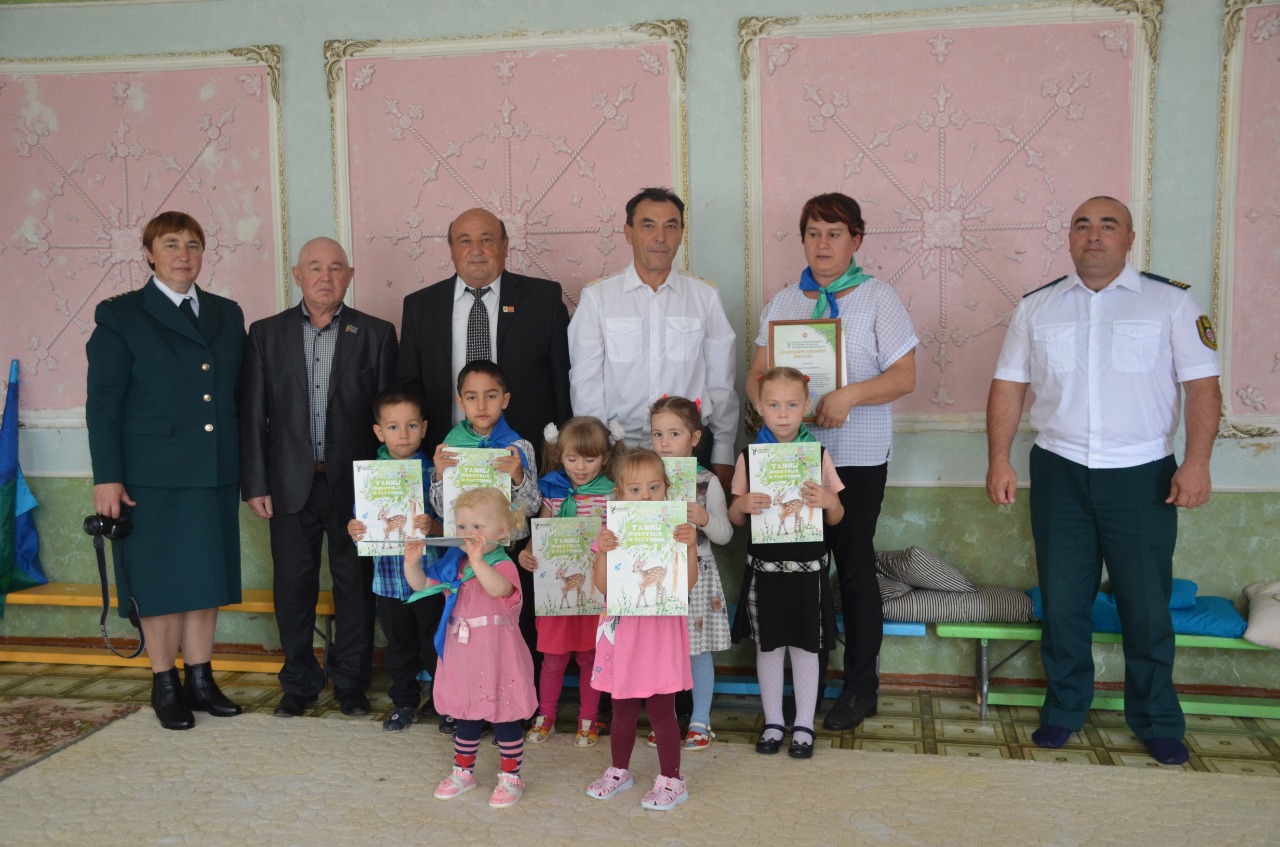 Мәктәптә алар «ЭКОС» отряды эшчәнлеге белән таныштылар һәм яшь табигать сакчыларының чыгышларын тыңладылар. Аннары балалар бакчасында тәрбияләнүчеләр белән экология дәресе үткәрелде, анда балаларны тантаналы рәвештә «ЭКОС»отрядына кабул иттеләр.