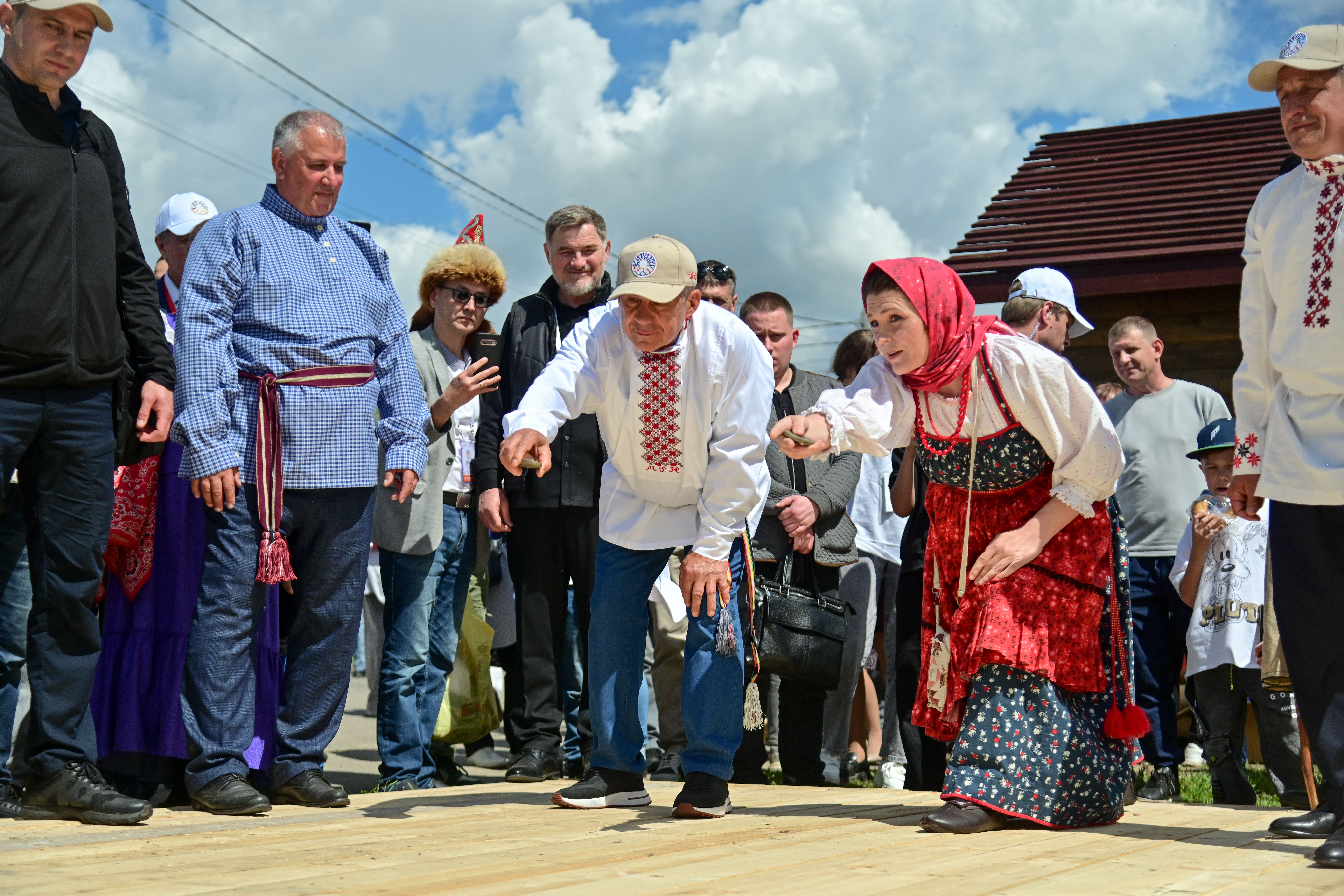 «Каравон» мәйданчыкларының берсендә Рөстәм Миңнеханов традицион рус уеннарында катнашты.