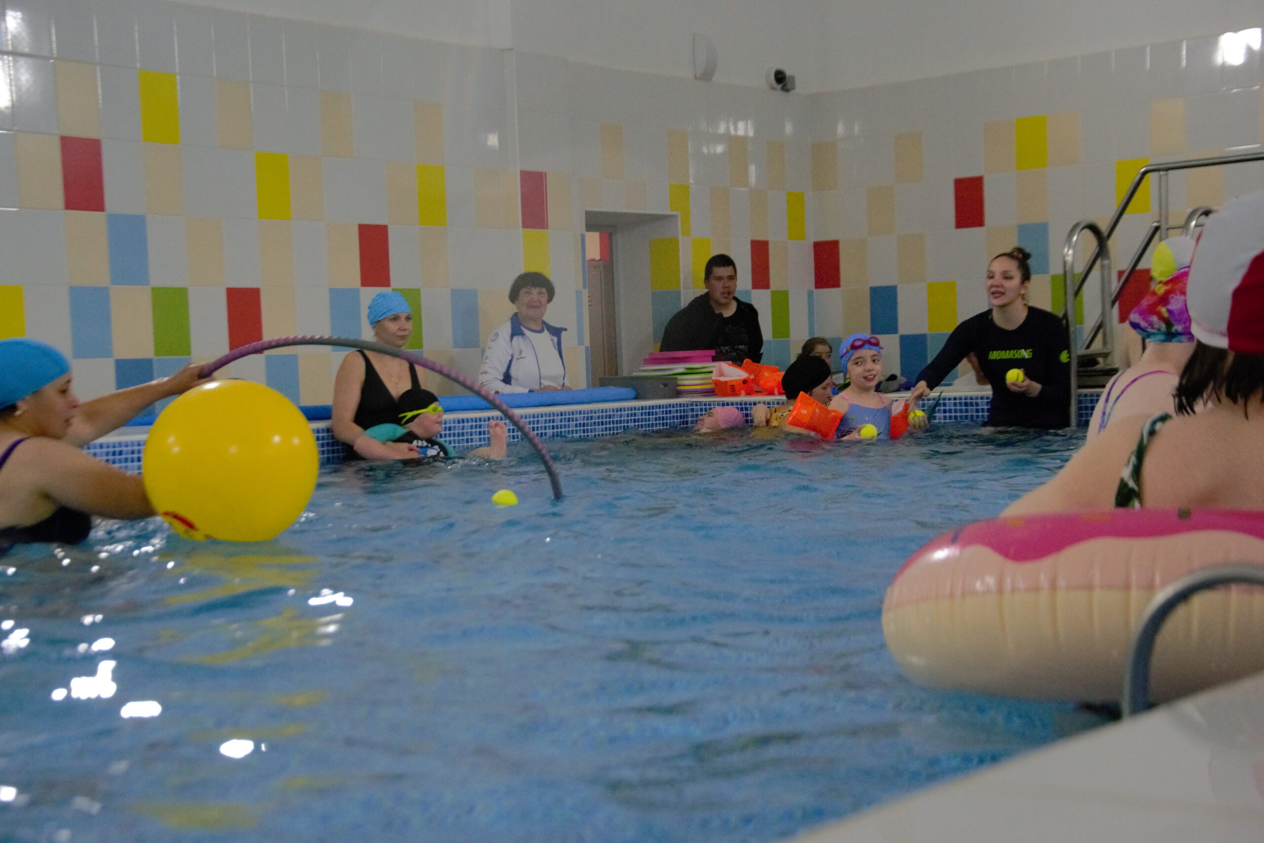Гаиләләр төрле мавыктыргыч ярышларда үзара ярышты. Кемдер ластлар (аяклар өчен йөзгечләр) ярдәмендә йөзү тизлеген арттырды, кемдер бөтен гаиләсе белән нудлга иярләде һәм аяклары белән актив иште, кемдер йөзү тактасында бер стакан су китерергә тырышты, ә кемдер дәресләр вакытында ирешкән осталыгын күрсәтте – аркада, су астында йөзү.