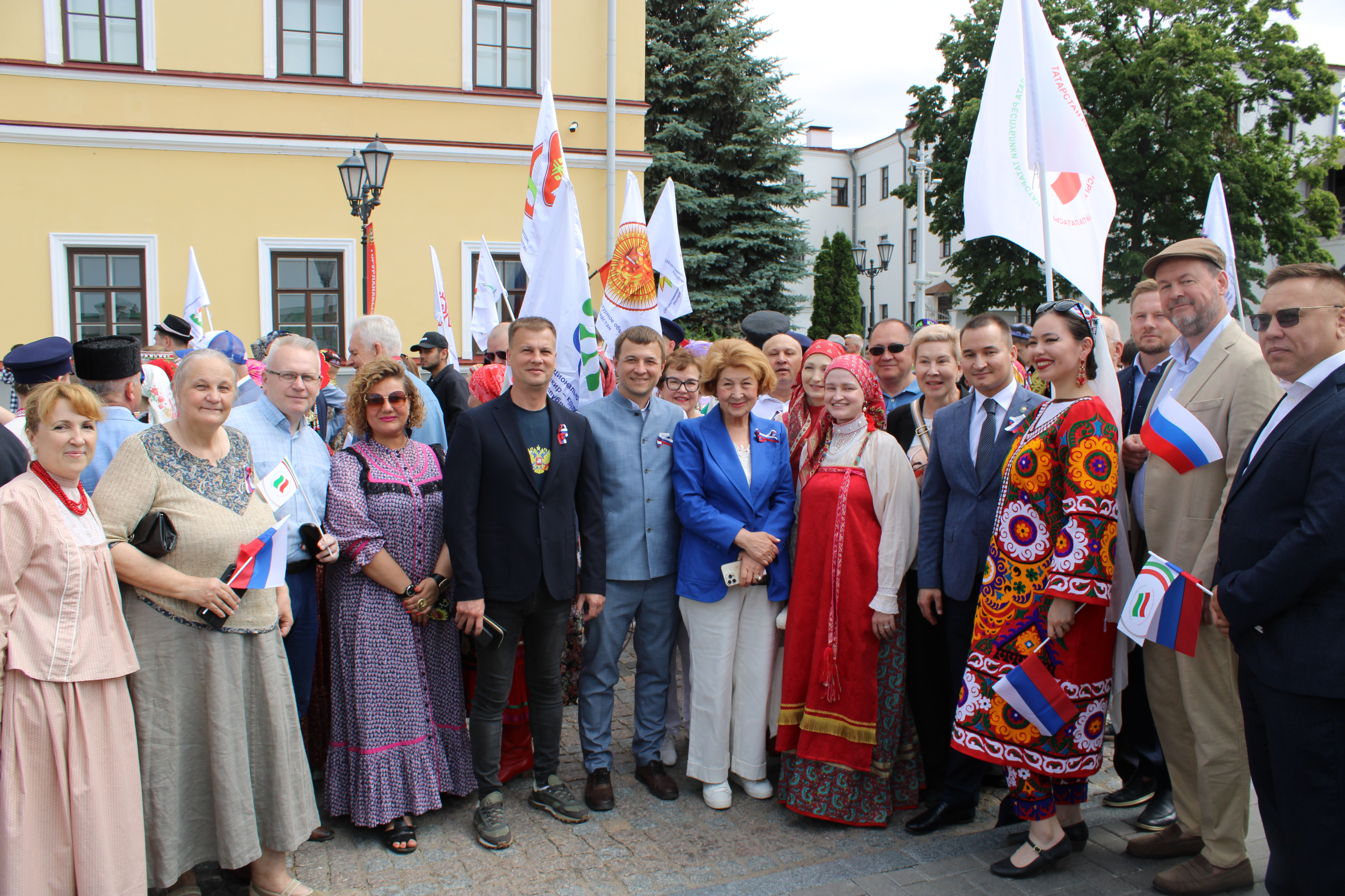 Йөреш берничә дистә метрга сузылды, милли киемнәрдәге катнашучылар җырлар башкарды, барысыннан да көчлерәк итеп Россия гимнын яңгыраттылар.