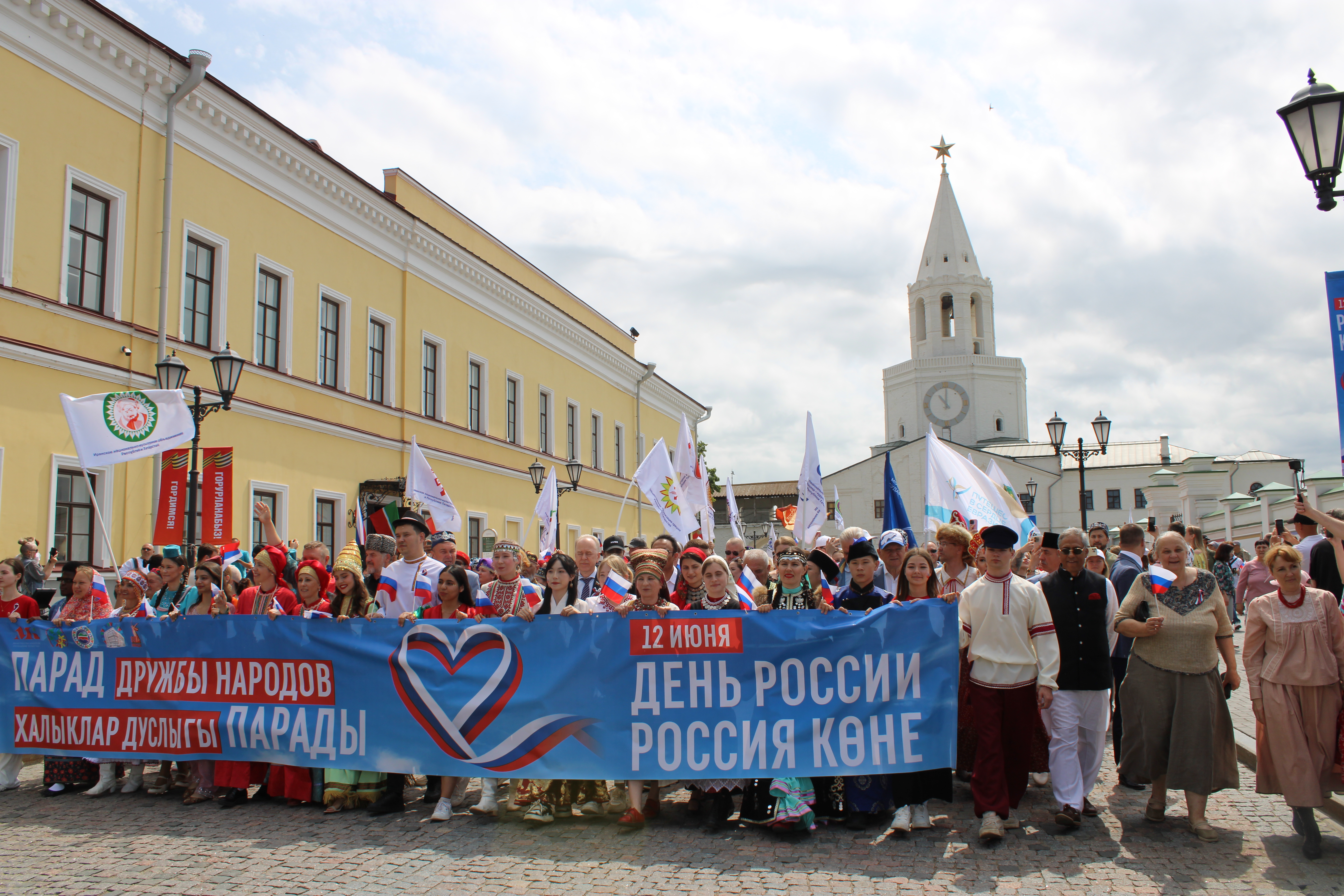 Казан Кремлендә гадәт буенча, Россия көнендә 50дән артык милләт вәкилләрен берләштергән Халыклар дуслыгы парады узды, аларга ТР Иҗтимагый палатасы әгъзалары һәм экспертлары кушылды. Алар Спас манарасыннан Сөембикә манарасына кадәр барып, Кол Шәриф мәчетенә таба борылдылар һәм «Мәдәниятләр мозаикасы» этномәдәни фестивале уздырылган Гаммәви урыннар ишегалдына килеп җиттеләр.