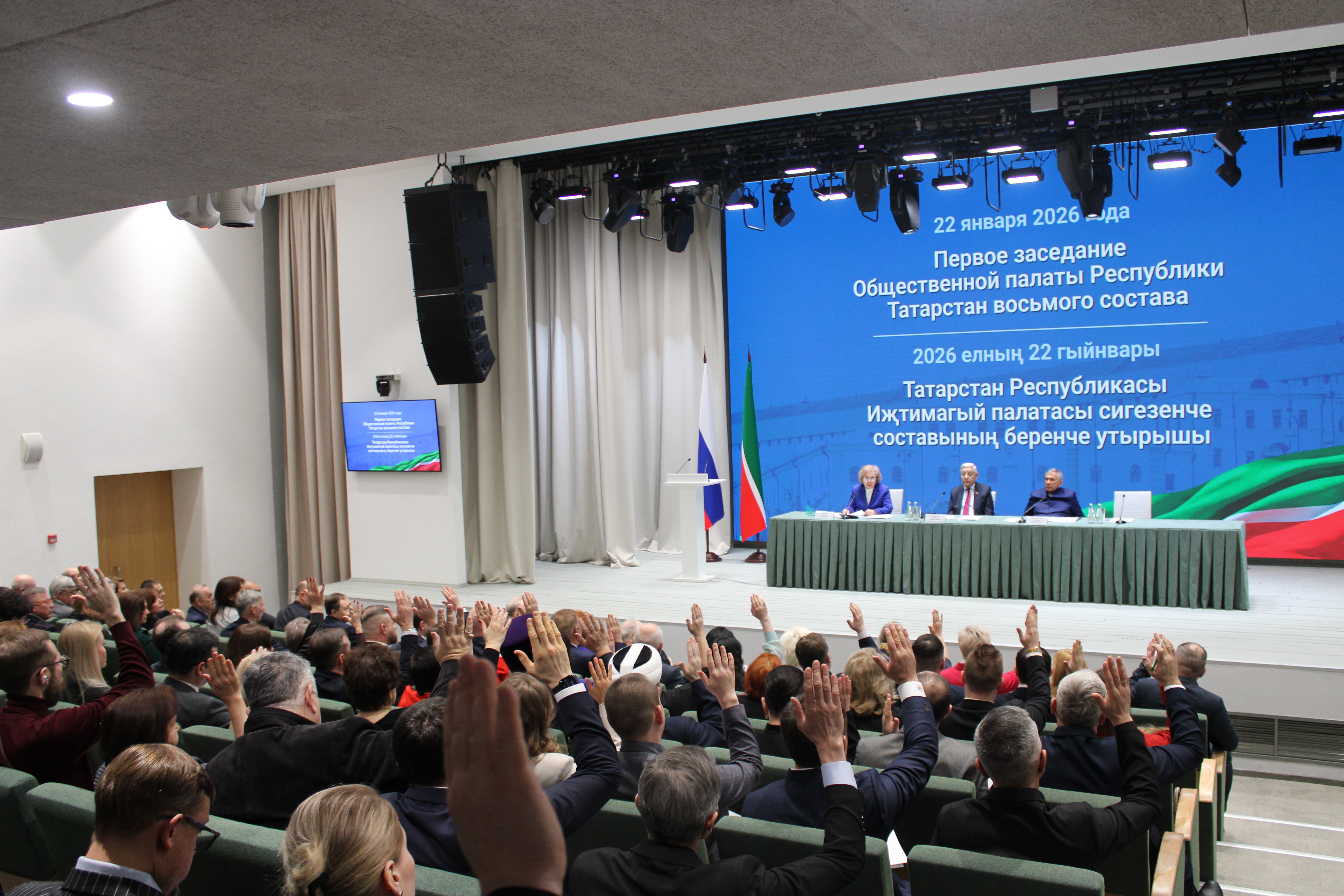 2026 елның 22 гыйнварында Татарстан Республикасы Милли китапханәсендә сигезенче составтагы Иҗтимагый палатаның беренче оештыру утырышы булды. Якындагы елларга регионда Гражданнар диалогы векторын билгели торган чара Татарстан Рәисе Рөстәм Миңнеханов катнашында үткәрелде һәм хакимиятнең, коммерцияле булмаган секторның, муниципаль берәмлекләрнең иҗтимагый советлары һәм хакимият органнары рәисләренең киң даирәсен җыйды.